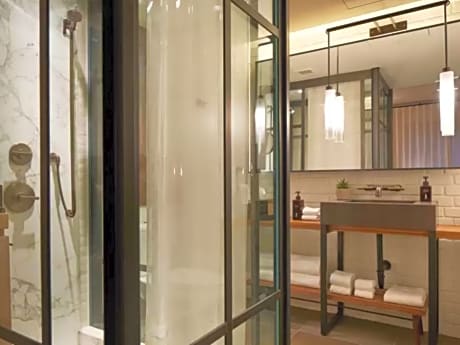 Dine at Jams, the on-site restaurant, where an open kitchen, exposed brick, and reclaimed oak create a warm atmosphere. Jams serves a variety of dishes for breakfast, lunch, and dinner, and offers a special brunch on Saturdays and Sundays. Stay active with the fitness center, or relax at the bar and snack bar after a day of exploring the city.