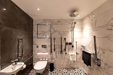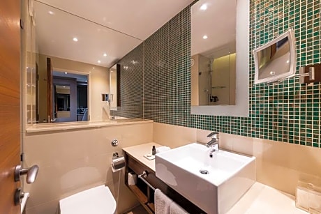 The Cozy Double Rooms are beautifully decorated in elegant and contemporary tones. Each room comes with a 49-inch flat-screen Smart TV with Chromecast and complimentary WiFi. The stylish bathrooms come with premium amenities. Each room also offers air conditioning, USB charge points, a minifridge, an iron, an ironing board and black-out curtains.