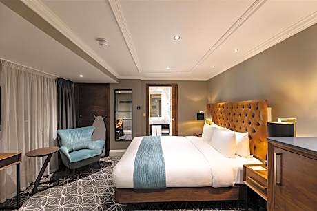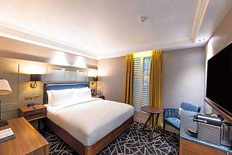 Well-placed in exclusive South Kensington, this luxury hotel is a short walk from London’s Natural History, Science and Victoria and Albert Museums and the Royal Albert Hall. 100 Queen's Gate Hotel London Kensington, Curio Collection by Hilton has a restaurant and cocktail bar. With a Regency-style exterior, the hotel’s rooms all boast a modern décor with classic touches. Each features free tea and coffee, with some rooms having a Nespresso machine. They also all include a private bathroom, a 49-inch flat-screen Smart TV with Chromecast and free WiFi access. Guests can enjoy a traditional Afternoon Tea with a selection of teas from Newby in an elegant atrium flooded with natural light. Our signature restaurant Cento proudly showcases the very best of traditional Italian cuisine. Sit back and relax in beautifully appointed dining room, taking inspiration from the olive groves of Italy, while dining on classics including Chicken Milanese, Lobster Ravioli and our Pinsa Romana. There is also a 24-hour gymnasium. A large number of restaurants and bars are in the immediate area, and Hyde Park is just 0.7 miles away. There are 2 Tube stations within 5 minutes’ walk, providing access to London’s major attractions.