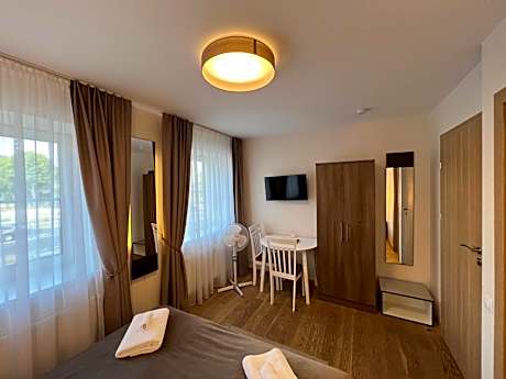 The double room offers a wardrobe, parquet floors, as well as a shared bathroom boasting a walk-in shower and a hairdryer. This double room provides heating, a flat-screen TV and an inner courtyard view. The unit has 1 bed.