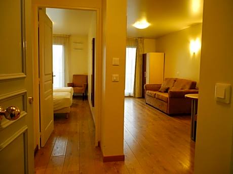 This quadruple room has a private bathroom and parquet floors. The fully equipped kitchen features a stovetop, a refrigerator, kitchenware and a microwave. The quadruple room provides a dining area, a wardrobe, a safe deposit box, an electric kettle, as well as a flat-screen TV. The unit offers 4 beds.