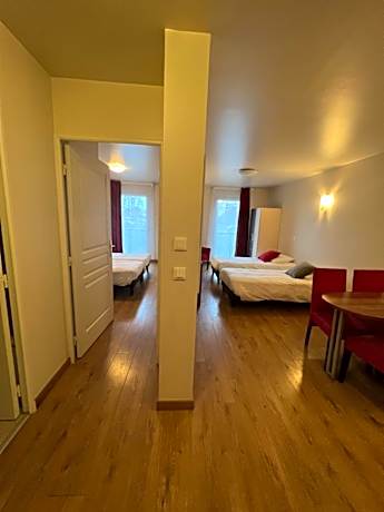 This Apparthotel is located 1148 feet from Boussy-Saint-Antoine RER Station and opposite a Cora supermarket. A flat-screen TV, a safe and a fully equipped kitchenette are provided in each studio. There is free WiFi available in the reception area. All apartments have a private bathroom and are serviced by 2 elevators. The modern rooms are decorated in warm, neutral tones and have a wardrobe, a flat-screen TV, a kitchenette and a balcony. The Val d' Yerres 2 shopping mall is located just 1640 feet from the residence. The A6 and A5 motorways are a short drive away and the RER line D provides direct access to central Paris within 25 minutes. Orly Airport is 19 mi from 1Ere Avenue Val Senart.