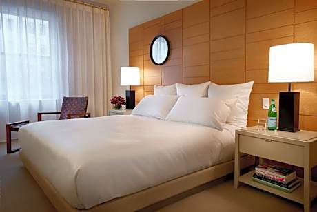Each guest room is a masterpiece of modern design, equipped with a flat-screen cable TV, coffee machine, and private bathroom adorned with complimentary toiletries. The hotel's commitment to culture and comfort is evident in the contemporary art gallery and rooftop bar, providing guests with spaces to relax and connect.