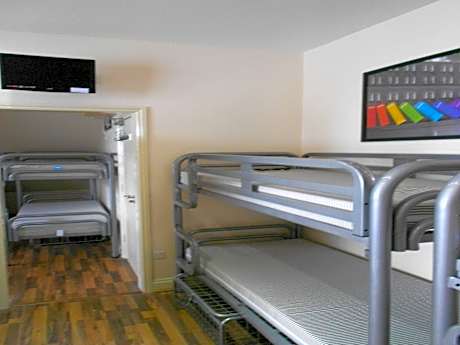 A bunk bed in a female dormitory with shared bathroom.