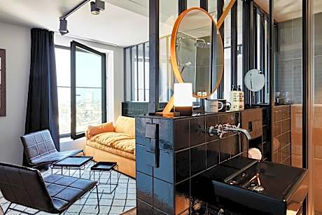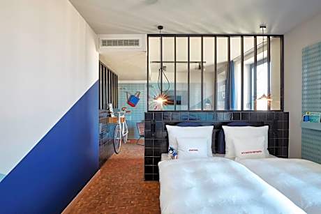 Located in Düsseldorf, a 13-minute walk from Central Station Düsseldorf, 25hours Hotel Das Tour has accommodations with a fitness center, private parking, a terrace and a restaurant. Featuring a bar, the hotel is close to several noted attractions, around a 12-minute walk from Capitol Theater Düsseldorf, 0.9 miles from Theater an der Kö and a 15-minute walk from Düsseldorfer Schauspielhaus. The hotel has a sauna, a 24-hour front desk and free WiFi throughout the property. At the hotel rooms have air conditioning, a seating area, a flat-screen TV with cable channels, a safety deposit box and a private bathroom with a shower, free toiletries and a hairdryer. The rooms have a desk. A buffet breakfast is available at 25hours Hotel Das Tour. The area is popular for cycling, and bike rental is available at the accommodation. Popular points of interest near 25hours Hotel Das Tour include Koe-Bogen, Kunsthalle Düsseldorf and Kom(m)ödchen. Düsseldorf Airport is 4.3 miles from the property.