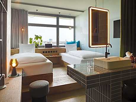 Well set in Berlin, 25hours Hotel Bikini Berlin provides air-conditioned rooms, a shared lounge, free WiFi and a terrace. The property is around a 3-minute walk from Zoologischer Garten Metro Station, 0.8 miles from Kurfürstendamm and 1.5 miles from Berlin Philharmonic Orchestra. The hotel features a sauna and a 24-hour front desk. At the hotel, every room comes with a desk. Featuring a private bathroom with a shower and free toiletries, certain units at 25hours Hotel Bikini Berlin also provide guests with a city view. All guest rooms in the accommodation are equipped with a flat-screen TV and a hairdryer. Guests at 25hours Hotel Bikini Berlin can enjoy a buffet breakfast. At the hotel you'll find a restaurant serving Mediterranean, Middle Eastern and Moroccan cuisine. Vegetarian and halal options can also be requested. The area is popular for cycling, and bike rental is available at 25hours Hotel Bikini Berlin. There's an on-site bar and guests can also use the business area. Holocaust Memorial is 2 miles from the accommodation, while Potsdamer Platz is 2.1 miles away. Berlin Brandenburg Willy Brandt Airport is 14 miles from the property.