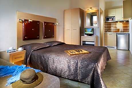 Just 492 feet from the beach of Metamorfosi in Halkidiki, 4-You features a swimming pool with poolside snack bar. It features self-catered accommodations with free Wi-Fi and a balcony or patio overlooking the garden. Featuring earthy colors and modern decoration, all the air-conditioned units at the 4-You include an LCD satellite TV. Each comes with a kitchenette with microwave or electric oven, cooking hobs and fridge. A private bathroom with shower cabin and a hairdryer is provided. Guests can relax on the sun terrace and taste cocktails from the bar. Restaurants and cafés are within a 3-minute walk.The lively resort of Nikiti is 3.7 mi away. The Cave of Petralona is a 30-minute drive away.