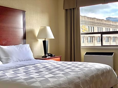 Located in downtown Winnipeg, this hotel is 5 minutes' walk from the Winnipeg Art Gallery. It features an on-site restaurant, a lounge, and an indoor lap pool and hot tub. The Forks Market is 1.6 mi from the property. Complimentary WiFi is provided. Flat screen TVs are included in every room at Holiday Inn & Suites Winnipeg Downtown. They are equipped with Keurig coffee makers, a mini refrigerator, and a work desk. Peppermill Café, the on-site restaurant, offers casual dining for breakfast and dinner. The Fireside Lounge provides a cozy, relaxing environment for a night cap. A fitness center featuring treadmills, bikes and free weights is provided. A business center is offered at the Downtown Winnipeg Holiday Inn & Suites. The front desk is staffed 24 hours a day. The University of Winnipeg is located next to the property while Canada Life Center, home of the Winnipeg Jets, is 0.6 mi from the property. The Canadian Museum for Human Rights is 1.2 mi and Investors Group Field is 6.2 mi away.