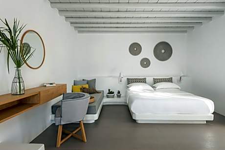 In a quiet countryside area only a 15-minute walk from Mykonos Town, The A Hotel by Mykonos Arhontiko features charming accommodations with a swimming pool and hot tub. Guests enjoy free Wi-Fi and free shuttle service. The tastefully decorated rooms and apartments at the A Hotel each have a furnished patio overlooking the pool. They are built in traditional Cycladic style, and their facilities include air conditioning, satellite LCD TV and a fridge. A rich breakfast is included with the room, and served in the restaurant, where lunch and dinner is available for the rest of the day. If you would like, you can just spend a day at the Arhontiko with all amenities available. The swimming pool follows eco-friendly standards for water purification. Next to the pool, you can find the hot tub, as well as wood deck chairs with cushions, umbrellas and a pool bar. The staff is readily available for your car/bike rentals, island tours, as well as restaurant reservations, massage appointments and more. Free on-site parking is provided.