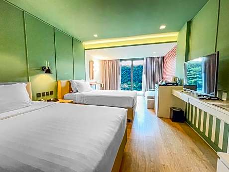 Happihaus Hotel Bangkok offers top-notch services and amenities, ensuring guests experience utmost comfort. Share your photos and respond to emails at your convenience, thanks to the free Wi-Fi internet access offered by hotel.Visitors can take advantage of complimentary parking directly at the hotel. Reception services such as luggage storage and safety deposit boxes are available to accommodate your requirements.Traveling with minimal baggage is achievable at Happihaus Hotel Bangkok, as the hotel's dry cleaning service and laundry service ensures your garments stay fresh. Room amenities like room service and daily housekeeping contribute to making a perfect selection for your stay. Smoking is limited to specified smoking zones.Each accommodation at Happihaus Hotel Bangkok is thoughtfully created and adorned to provide visitors with a comfortable, home-like atmosphere. In certain rooms, the hotel offers blackout curtains and air conditioning for guest convenience and satisfaction.In select rooms, guests at the hotel can enjoy top-notch in-room entertainment with television, in-room video streaming and cable TV available for their convenience.Rest assured, in a few chosen rooms, you will find the convenience of a refrigerator, bottled water and instant coffee at your disposal. Maintain your cleanliness and comfort using a hair dryer, toiletries and bathrobes available in select guest restrooms. Embark on your holiday experience in the most ideal manner. Commence each morning of your visit with an on-site breakfast. Experience the delight of a fresh morning by savoring excellent coffee at the cafe situated within hotel. Should you prefer not to venture out for a meal, the enticing culinary choices at hotel are always available for your satisfaction. Indulge in the numerous pursuits available at Happihaus Hotel Bangkok. Each day at hotel, immerse yourself in the invigorating waters of the pool, perfect for a rejuvenating plunge or a series of revitalizing laps. For individuals who don't want to skip their exercise routine, visiting the hotel fitness center ensures you maintain your vitality and wellness.