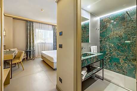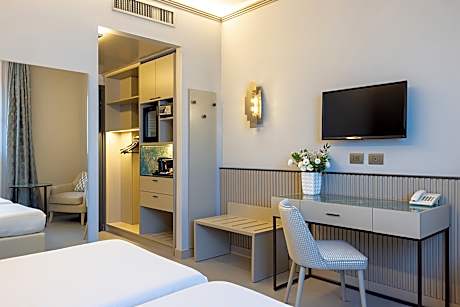 Hotel Abacus offers free high-speed WiFi, and a free fitness area with indoor heated pool, 2 saunas and Turkish bath. Nearby Sesto San Giovanni Metro offers links to Milan's Corso Buenos Aires, Cathedral, and exhibition center. The rooms are spacious, and come with a mini-bar, a satellite TV, and individually controlled air conditioning. Some rooms overlook the garden, fitted with a veranda and a children's playground. The fitness area in the Abacus is complete with a swimming pool heated up to 27°C, a sauna, and a Turkish bath. There is also a small fitness area, and a relaxation area with deck chairs. An American style buffet breakfast is available daily. The hotel enjoys private access through a restricted road reserved for guests. Airport shuttles are available on call, and the Cinisello Balsamo - Sesto San Giovanni A4 Motorway access is just 1640 feet away.