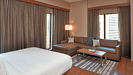 AC Hotel by Marriott Minneapolis Downtown is located in the Downtown West district in Minneapolis, 1640 feet from Target Field and 2.4 mi from US Bank Stadium. Guests can enjoy the on-site restaurant. Each room at this hotel is air conditioned and comes with a flat-screen smart TV with video-streaming services, including Netflix and Hulu. Some units feature a seating area for your convenience. You will find a 24-hour front desk at the property. A hotel restaurant and bar offer the guests freshly prepared meals on-site. The hotel is steps away from the Light Rail system, offering easy access to several city attractions, including the Mall of America. The nearest airport is Minneapolis-Saint Paul International Airport, 7.5 mi from AC Hotel by Marriott Minneapolis Downtown.
