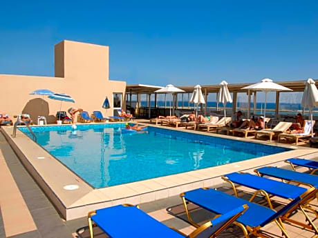 Just steps away from the seafront, in the centre of Rethymnon, this modern hotel offers easy access to the entrance of the old town with its narrow streets, medieval castle and picturesque Venetian port. The well-appointed rooms are all air conditioned , featuring views of the city or the private garden of the hotel. Offering authentic Cretan hospitality combined with 4-star comforts, the hotel features 72 spacious rooms with balconies overlooking the sea or the lush interior garden. Achillion Palace also has a small courtyard garden with a fountain where guests can enjoy light refreshments throughout the day, as well as a breakfast room, cafe bar and lounge. The hotel also benefits from a rooftop freshwater swimming pool and sun deck, which is open during daylight hours. The long sandy beach is within easy walking distance (100 metres), as are the numerous restaurants, shops and bars, for which the town is known.