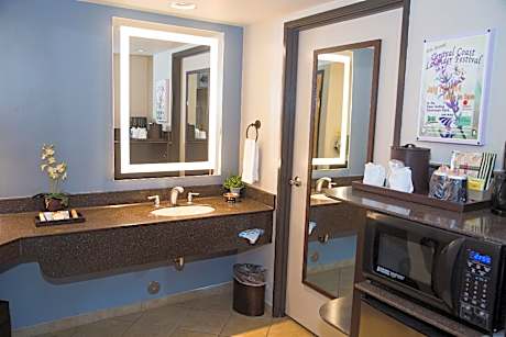 Muffins and fruit are available each morning at this hotel. In the heart of Paso Robles wine country, guests can enjoy a flat-screen cable TV in all rooms. Hearst Castle is only 40 miles away. Free Wi-Fi is available in all rooms at the Adelaide Inn, and a work desk is also furnished. A coffee machine, microwave, and small fridge are also available. A fitness room, outdoor pool, and hot tub are all available for guest use at the Paso Robles Adelaide Inn. Laundry services and dry cleaning services are available. Pianetta Winery, Anglim Winery, Parrish Family Vineyard and other Paso Robles wineries are within a 5 minute drive of the Adelaide Inn. The Downtown City Park is also a 5 minute drive away.