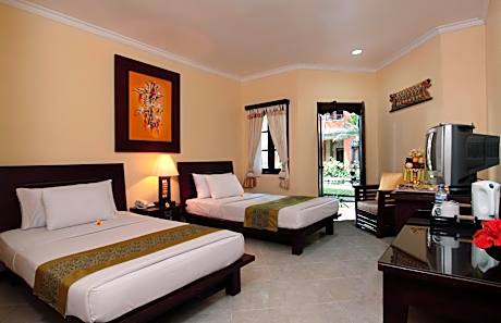 Adi Dharma Hotel Kuta offers top-notch services and amenities, ensuring guests experience utmost comfort.Complimentary internet access is available in the hotel to ensure you stay connected during your visit.Arrange your trips to and from the airport using the hotel's convenient transportation services booking. Discover the wonders of Bali with ease by utilizing the services provided by taxi, car hire and shuttle.Complimentary parking is available for guests. Continuously receive the support you require through front desk amenities such as concierge service, luggage storage and safety deposit boxes. At the hotel, their ticket service and tours is also capable of assisting with booking tickets and securing reservations for entertainment and adventures.Chilly nights become more delightful than balmy ones, as you snuggle near the hotel's inviting hearth. Always look your best in your preferred attire with the dry cleaning service and laundry service provided at Adi Dharma Hotel Kuta. Craving relaxation? In-room amenities such as room service and daily housekeeping allow you to maximize your time spent inside the room. Due to health concerns, smoking is strictly prohibited within the entire premises of hotel.For the health and well-being of all guests and staff, smoking is restricted exclusively to assigned zones.Accommodations come equipped with all the conveniences required for a restful night's slumber.A selection of rooms feature linen service, blackout curtains and air conditioning to ensure your comfort and convenience.A few accommodations at Adi Dharma Hotel Kuta also include unique design elements like a balcony or terrace. A few chosen rooms are equipped with television and cable TV to ensure guest amusement. In certain rooms, the hotel offers visitors access to a refrigerator, bottled water, a coffee or tea maker and mini bar. Adi Dharma Hotel Kuta offers a hair dryer, toiletries and bathrobes in the restrooms of specific accommodations. A delightful breakfast is the perfect way to begin your day, and at Adi Dharma Hotel Kuta, you can always indulge in a scrumptious meal on-site. All adore a delightful cup of coffee! An on-site coffee shop ensures you can relish a cup of authentic, freshly-brewed coffee every morning -- or whenever you desire it.Allow your journey to be free from the pangs of hunger! On-site eateries offer delicious and accessible meal choices.An evening spent at hotel's bar can offer as much enjoyment as venturing out with your fellow travelers. Are you inclined to prepare your own dishes? You will surely appreciate having the on-site BBQ facilities available. Adi Dharma Hotel Kuta provides a superb assortment of leisure amenities for guests to enjoy.Conclude your days in complete tranquility by visiting the massage situated precisely at the hotel. At Adi Dharma Hotel Kuta, a wide array of amenities guarantees a fulfilling experience throughout your visit. Make your holiday truly memorable by taking a rejuvenating plunge into the pool.At Adi Dharma Hotel Kuta, the poolside bar provides an excellent incentive to enjoy extended hours in your swimwear. At the hotel fitness center, you have the option to engage in your daily exercise routine or simply alleviate your jet lag by breaking a sweat.