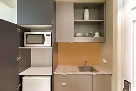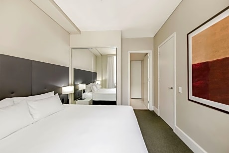 With an exclusive location on Victoria Square, in the heart of the city, Adina Apartment Hotel occupies the heritage-listed former Treasury Building. It features impressive interiors and facilities. Guests receive 100MBS of free WiFi per 24 hours. The hotel's interiors are decorated with elegant Italian furniture and Australian artwork. The spacious, fully self-contained apartments and open-plan studio rooms offer a kitchenette. Accommodations is also available on a bed-and-breakfast basis. Guests can relax in the sauna, take a dip in the heated swimming pool or work out in the fully equipped fitness center. Meeting facilities and child minding services are also available. Breakfast is available at the on-site restaurant and includes toast, eggs, bacon, tomatoes, filter coffee and fruit juice. Adina Apartment Hotel Adelaide Treasury is surrounded by restaurants, cafes and shops, which can be reached within minutes. We welcome children to stay without charge in line with room occupancy limits when using existing bedding. Should you require additional bedding to be provided please note this attracts an additional nightly charge and is subject to hotel availability.