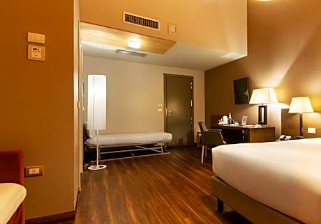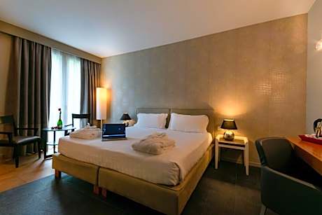 The Admiral Park Hotel by Falco D'Oro Hotels is located in Zola Predosa, on the west side of Bologna, and is immersed in a picturesque vast park. The Admiral is approximately 15 minutes' drive from either the city center, the exhibition district, the central railway station and Bologna International Airport. The hotel offers a congress center with different types of rooms (capacity up to 300 people) all air-conditioned and equipped with modern technologies. Shuttle bus service to and from the fair district in Bologna during major exhibitions.