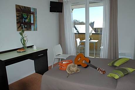 The Adonis Hotel is located in Équemauville, in the Calvados region of Normandy. It offers an outdoor swimming pool and soundproofed modern accommodations. Apartments and rooms at the Adonis Hauts de Honfleur has a flat-screen TV with satellite channels. Apartments have a fully-equipped kitchenette and dining area. The hotel also provides free private parking and free Wi-Fi access in public areas.