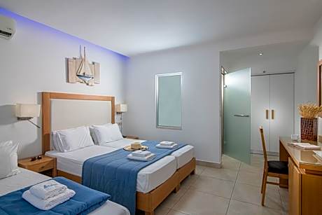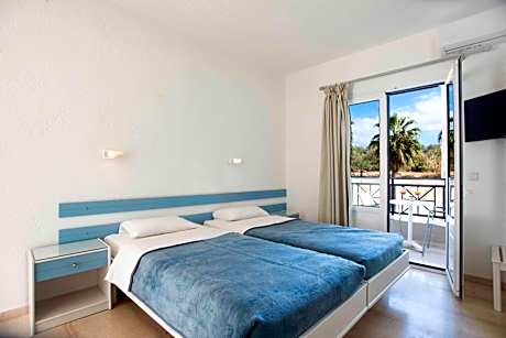 An ideal base for exploring Crete, Aeolos Beach Resort is ideal for everyone, for lively or quiet vacations. Popular for its traditional hospitality and prime beach front position, Aeolos Beach Resort is 20 miles from Heraklion port and airport and just a walk from the village of Malia. Spend time relaxing by the pool, playing basketball or trying your hand at the many water sports that you can find at the beach. In the evening watch the sun go down with a drink at the lovely beach bar. Malia' has a wide choice of stores , bars, restaurants and nightspots, is just 440 yards away.