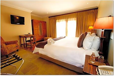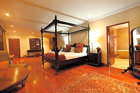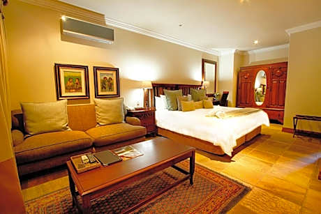 The luxurious Afrique Boutique Hotel Ruimsig is surrounded by landscaped gardens on the banks of the Crocodile River. It offers elegant rooms with balconies. The large rooms are beautifully decorated with lavish furnishings and come fully equipped for the needs of the modern traveler. Guests can enjoy a cocktail on the main deck or plunge into a sparkling rim flow pool with views of the mountains and lush gardens. The wine cellar with the finest of Cape wines, caters to the wine connoisseur and can also be used as conference facility. Nearby attractions include Silverstar Casino, Walter Sisulu Botanical Gardens, Lanseria Airport, Maropeng World Heritage Site and Cradle of Humankind. Afrique Boutique is only 9 miles from Soccer City in Soweto and 21 miles from Ellis Park Stadium.