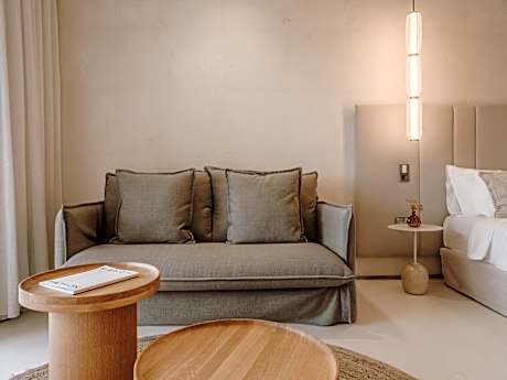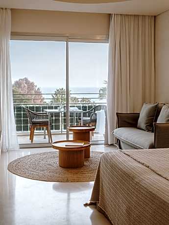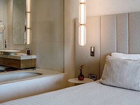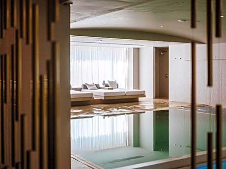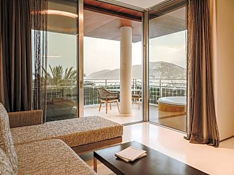 Aguas de Ibiza Grand Luxe Hotel - Small Luxury Hotel of the World is a luxury design hotel with a free spa and outdoor pool. The rooftop bar-terrace is only for adults and offers views of Santa Eulalia Marina and the island of Formentera. The stylish rooms at the Aguas de Ibiza Grand Luxe Hotel - Small Luxury Hotel of the World feature free internet, a 50" TV and a private terrace, most with sea views. The modern bathrooms include natural stone furnishings, a bathrobe and slippers. Free high-speed WiFi is available. Aguas de Ibiza’s Alabastro Restaurant prepares international and eclectic dishes, made with local, seasonal produce. Maymanta Restaurant offers Peruvian cuisine and features show cooking. The 4921 ft², prize-winning Revival Spa includes indoor pools, a fitness center, saunas and a hot tub. Guests have unlimited access to the spa. A range of massages and treatments are available. Only for adults from 16 year old. Ibiza city center is 20 minutes' drive from the hotel. Santa Eulalia Beach and Nikki Beach private club are 0.6 mi away. - There are 4 outdoor swimming pools. One for children, two "only adults" in the roof top. - The gastronomic restaurante Maymanta is located in the rooftop and offer stunning view to the Bay, the Harbor and the sunset. - Breakfast buffet offers multiples options and show cooking. - Hippie market is located at 3.1 mi from the property. License Number(s): H-0032-E