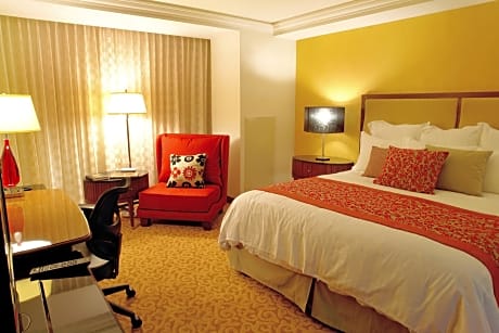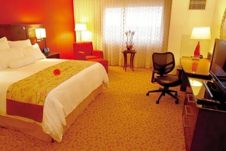 The stylish Aguascaliente Marriott Hotel offers spacious rooms, decorated in bold colors with contemporary furnishings and a flat-screen TV. It features a fitness center and heated outdoor swimming pool. Guests can enjoy international and Mexican cuisine in the Condimento Restaurant. 24-hour room service is available and there is a stylish lobby bar for drinks and cocktails. Jesus Teran International Airport is 12 miles from the hotel, while the central bus station is 7.5 miles away. The Descubre Museum is 9 miles from Aguascaliente Marriott.