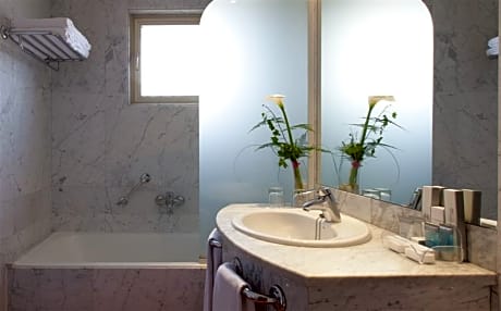 This triple room has 2 single beds and a sofa bed. It offers modern décor and wooden floors. It includes flat-screen satellite TV, a safe and a selection of pillows. The marble bathroom comes with a bathrobe and hairdryer.