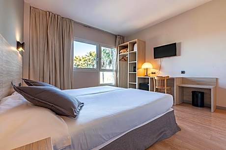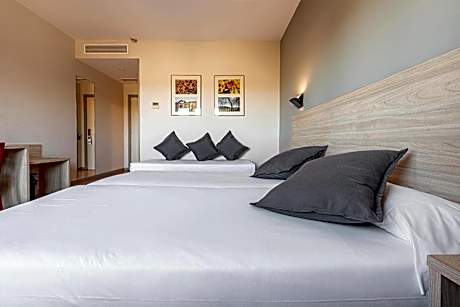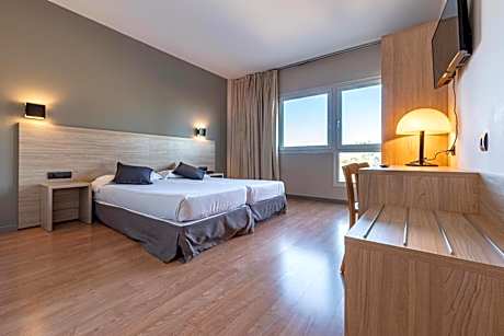Hotel Air Penedès is between Barcelona and Tarragona, and is easily accessible by highway to both cities. The hotel offers free parking and free Wi-Fi in all rooms. The hotel has an outdoor swimming pool, open in summer. The Air Penedès is on the edge of the town of Vilafranca de Penedès. Some of the region’s best wine and cava cellars are within a short drive. The PortAventura Theme Park is within 35 minutes by car, and the beaches of Sitges are less than 12 miles away. All rooms are spacious, exterior and soundproofed. There is satellite TV with national and international channels, and central air conditioning and heating.