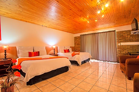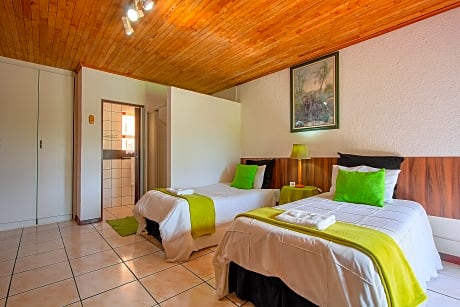 Airport Bird & Game Lodge is located next to bushland 6.2 mi north of Johannesburg International Airport. It features lush landscaped gardens, an outdoor swimming pool and free airport shuttle. Each room comes complete with a shower, separate toilet, hairdryer, and free WiFi which allows virtually unlimited viewing on any personal device via the internet as if you were at home. We serve lunch and dinner, orders to be placed at reception. Reception can offer information on activities in the local area and has luggage storage facilities. Free Wi-Fi is available throughout. Central Johannesburg is 19 mi away and there is free car parking on site. The Serengeti Golf & Wildlife Estate is a 15-minute drive away. Please note our Garden Restaurant serves breakfast only. Airport Bird & Game Lodge provides FREE Airport transfers. Some rooms may not have TV’s due to pending room upgrades. Kindly inquire with Reception when making your booking.