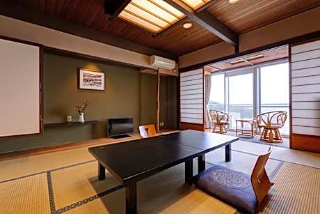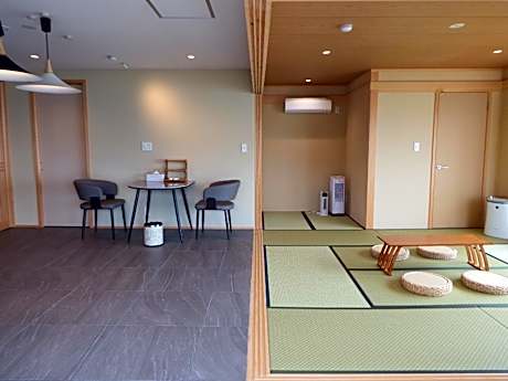 The quadruple room offers air conditioning, tatami, a balcony with sea views as well as a shared bathroom featuring a hairdryer. The unit offers 4 futons.