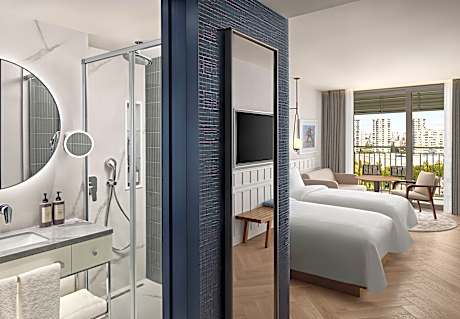 This air-conditioned twin room includes a flat-screen TV with satellite channels, a private bathroom as well as a balcony with sea views.