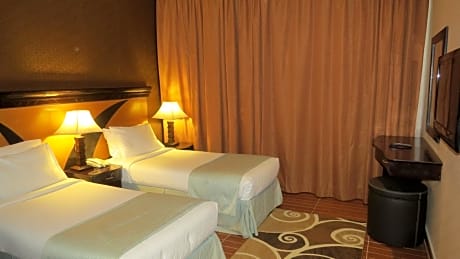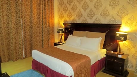 Al Jawhara Hotel offers deluxe apartments with balcony in the heart of Dubai, just a 4-minute drive from Dubai International Airport. It features an outdoor pool and a bubbling hot tub. The spacious apartments of Al Jawhara are furnished with dark-wood furniture and golden details, rich fabrics and large sofas. The kitchens are equipped with microwave, electrical stove and washing machine. Al Jawhara’s leisure offer includes separate swimming pools for men and women. Dedicated saunas are also available for relaxation. Al Jawhara Hotel Apartments has an on-site restaurant providing room service. The Deira City center shopping mall, with its array of restaurants is less than 1640 feet away.