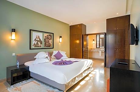 Surrounded by an 18-hole golf course, the villa is just a 10-minute drive from Jemaa-El-Fena. It features contemporary, Medina-style accommodations each with a private swimming pool. The air-conditioned villa has large living areas with flat-screen TV and a fireplace. Kitchens are equipped with a dishwasher, kettle and fridge. Free Wi-Fi access is available in all accommodations. Guests can sample a wide selection of Morroccan teas at Tea Corner of Medina. Restaurant de la Medina serves Moroccan and international specialties throughout the day. A spa with hammam, fitness room and massage treatments is located within the resort. Limousines and airport shuttles can also be arranged by the 24-hour concierge service.