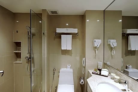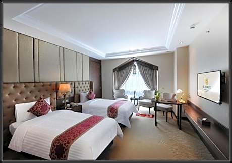 Al Meroz Hotel Bangkok- The Leading Halal Hotel offers top-notch services and amenities, ensuring guests experience utmost comfort.Complimentary internet access is available in the hotel to ensure you stay connected during your visit.Arrange your trips to and from the airport using the hotel's convenient transportation services booking. Amenities at taxi offered by Al Meroz Hotel Bangkok- The Leading Halal Hotel simplify the organization of your excursions, tourist activities, and other adventures in Bangkok. Complimentary parking is available for guests.Continuously receive the support you require through front desk amenities such as concierge service, luggage storage and safety deposit boxes.Always look your best in your preferred attire with the dry cleaning service and laundry service provided at Al Meroz Hotel Bangkok- The Leading Halal Hotel. Craving relaxation? In-room amenities such as 24-hour room service, room service and daily housekeeping allow you to maximize your time spent inside the room.Additionally, you can obtain minor travel essentials and miscellaneous items at the convenience stores without departing from the Al Meroz Hotel Bangkok- The Leading Halal Hotel.For the health and well-being of all guests and staff, smoking is restricted exclusively to assigned zones.Accommodations come equipped with all the conveniences required for a restful night's slumber.A selection of rooms feature blackout curtains and air conditioning to ensure your comfort and convenience. A few chosen rooms are equipped with television and cable TV to ensure guest amusement.In certain rooms, the hotel offers visitors access to a refrigerator, a coffee or tea maker, bottled water, instant coffee and mini bar.Al Meroz Hotel Bangkok- The Leading Halal Hotel offers a hair dryer, toiletries and bathrobes in the restrooms of specific accommodations. A delightful breakfast is the perfect way to begin your day, and at Al Meroz Hotel Bangkok- The Leading Halal Hotel, you can always indulge in a scrumptious meal on-site.All adore a delightful cup of coffee! An on-site coffee shop ensures you can relish a cup of authentic, freshly-brewed coffee every morning -- or whenever you desire it. Allow your journey to be free from the pangs of hunger! On-site eateries offer delicious and accessible meal choices.At Al Meroz Hotel Bangkok- The Leading Halal Hotel, guests with diverse dietary needs are accommodated by offering options like halal among the different types of cuisine. Al Meroz Hotel Bangkok- The Leading Halal Hotel provides a superb assortment of leisure amenities for guests to enjoy.At Al Meroz Hotel Bangkok- The Leading Halal Hotel, a wide array of amenities guarantees a fulfilling experience throughout your visit. Make your holiday truly memorable by taking a rejuvenating plunge into the pool.At the hotel fitness center, you have the option to engage in your daily exercise routine or simply alleviate your jet lag by breaking a sweat.