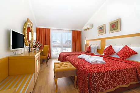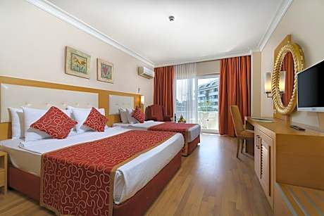 Come and stay at this wonderful 5-star resort along the Turquoise Coast and spend a carefree, all-inclusive vacation in an oasis of luxury. Absorb the friendly atmosphere of this exclusive hotel and enjoy the highest level of attentive, personal service. You can have breakfast outside and taste delectable specialties from the rich buffet. Lounge by the poolside or on the uniquely designed sun terrace in the middle of the pool and sip a refreshing beverage. Alternatively, you can engage in some exciting water sports or get competitive on the tennis court. Work up a sweat in the gym or unwind in the spa and health club. Venture out to the famous port town of Alanya to explore its bustling center and stroll along its glorious harbor. Sample the delicious variety of food at several on-site restaurants and absorb the lively atmosphere in one of the many different bars.