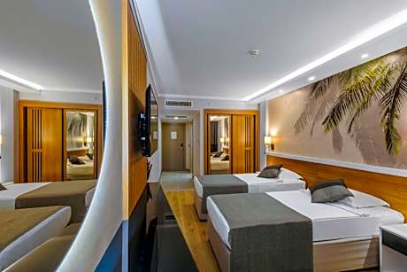 This all-inclusive, beachfront resort in Side overlooks the Taurus Mountains. It features 2 outdoor pools with water slides and a waterfall. It also has tennis courts, a spa and live entertainment. The 5-star Alba Resort Hotel - Ultra All Inclusive provides neatly decorated rooms with a private balcony and a flat-screen TV. Some rooms have panoramic views of the Mediterranean Sea. Turkish and world cuisine are served at the Alba Resort’s restaurant, which offers an à la carte menu, as well as buffets. Breakfast, lunch and dinner can be enjoyed indoors, or outdoors on the terrace. Guests can unwind at the spa, which has a Turkish hammam and a hot tub. Alba’s animation team organizes various games and sports activities throughout the day. There is also a lively nightclub and regular comedy shows. The Alba Hotel is located just 5 mi from the ancient ruins of Side and 8.1 mi from the Manavgat Province.