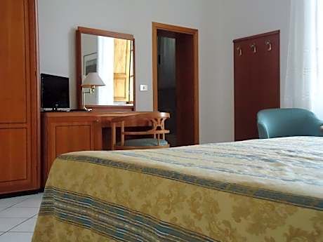 Albergo Roma is set in an elegant 18th-century building directly opposite the main entrance to Casciana Terme's thermal spa. Its gardens include a large swimming pool and sun terrace. Rooms have a classic design with tiled floors and decorated rugs. They are all air conditioned and come with a mini-bar, TV and panoramic views across the town. Guests at this family-run hotel will enjoy relaxing in the bar and TV lounge, where there is also free WiFi access. Breakfast is buffet style. Guests have good bus links to Pisa and Livorno, both around 45 minutes' drive away. Lucca can be reached in just over an hour by car.