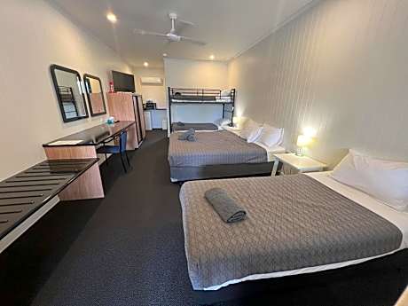 Offering an outdoor pool, Albert Park Motor Inn is just 2 minutes’ drive from Longreach Airport. It features air-conditioned rooms offering a flat-screen TV. Free WiFi is available throughout the property. Albert Park Motel Longreach is 5 minutes’ walk from the Qantas Founders Outback Museum, and 10 minutes’ walk from the Stockmans Hall of Fame. The Australian Agricultural College is 10 minutes' drive away. All rooms have a desk, a refrigerator and tea and coffee making facilities. Each room has a bathroom with a hairdryer and free toiletries. You can energize in the cold spa or enjoy an outdoor meal by the pool. The property also features a tour desk, a children’s pool and conference facilities.