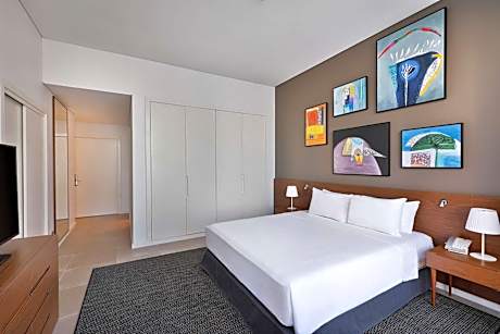 Experience an abundance of unparalleled facilities and features at Aleph Doha Residences, Curio Collection by Hilton.Share your photos and respond to emails at your convenience, thanks to the free Wi-Fi internet access offered by hotel.Should you require transportation to or from the airport, hotel is able to organize it prior to your arrival date.Taxi and car hire offerings at the hotel simplify arranging your excursions, explorations, and additional activities in Doha. Visitors can take advantage of complimentary parking directly at the hotel. Reception services such as concierge service, luggage storage and safety deposit boxes are available to accommodate your requirements.Should you desire access to the top entertainment in the city, assistance can be provided by the hotel's tours.Traveling with minimal baggage is achievable at Aleph Doha Residences, Curio Collection by Hilton, as the hotel's dry cleaning service and laundry service ensures your garments stay fresh. Room amenities like 24-hour room service, room service and daily housekeeping contribute to making a perfect selection for your stay. Minor items you neglected to bring won't cause major issues! Simply visit convenience stores to acquire what's necessary.Smoking is limited to specified smoking zones.Each accommodation at Aleph Doha Residences, Curio Collection by Hilton is thoughtfully created and adorned to provide visitors with a comfortable, home-like atmosphere.In certain rooms, the hotel offers linen service, blackout curtains and air conditioning for guest convenience and satisfaction.In select rooms, guests at the hotel can enjoy top-notch in-room entertainment with daily newspaper, television and cable TV available for their convenience. Rest assured, in a few chosen rooms, you will find the convenience of a refrigerator and a coffee or tea maker at your disposal. Maintain your cleanliness and comfort using a hair dryer, toiletries and bathrobes available in select guest restrooms. Experience the delight of a fresh morning by savoring excellent coffee at the cafe situated within hotel. Should you prefer not to venture out for a meal, the enticing culinary choices at hotel are always available for your satisfaction. No matter your specific dietary needs, rest assured that Aleph Doha Residences, Curio Collection by Hilton provides an array of halal choices to ensure your dining experience is nothing short of delightful.Experience an unforgettable evening with your fellow travelers just a short distance away, at hotel's bar. For those who prefer savoring meals within their personal space, Aleph Doha Residences, Curio Collection by Hilton offers the convenience of doorstep grocery delivery, allowing you to prepare and enjoy food in your room.Indulge in the numerous pursuits available at Aleph Doha Residences, Curio Collection by Hilton. Unwind after a long day by stopping by steam room and spa to rejuvenate your senses. Each day at hotel, immerse yourself in the invigorating waters of the pool, perfect for a rejuvenating plunge or a series of revitalizing laps. For individuals who don't want to skip their exercise routine, visiting the hotel fitness center ensures you maintain your vitality and wellness.