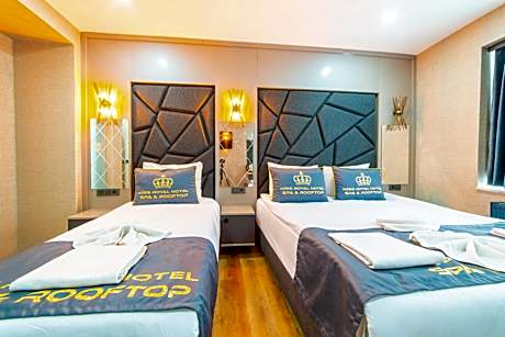 Located in the old part of Istanbul, this boutique hotel is only a 3-minute walk from Sultanahmet Square. It features a terrace café overlooking the Sea of Marmara, and offers air-conditioned guestrooms. Rooms at Miss Royal Hotel & SPA feature modern furnishings and large windows with garden or sea views. They come equipped with free WiFi and a flat-screen TV with satellite channels. Some rooms include a patio. In the morning the hotel serves a buffet breakfast with jam and hot coffee. Miss Royal Hotel & SPA has a restaurant that serves Turkish cuisine and a bar that offers cocktails and refreshing beverages. Hotel guests can benefit from the laundry and ironing services. There is also a tour desk that assists with car hire and offers information on local attractions. Bicycles are available for rent. Ataturk International Airport is only 11 mi from Miss Royal Hotel & SPA. The hotel offers 24-hour front desk service.