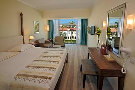 Featuring a seafront location 492 feet from central Paphos, this 4-star hotel overlooks a Blue Flag, sandy beach and is within a 10-minute walk from Paphos Harbor. It offers on-site restaurants, 4 pools and air-conditioned rooms. Rooms at Alexander The Great include elegant décor. They come equipped with a coffee maker and mini-bar. Some rooms feature furnished balconies with views of the sea, the medieval castle and the old fishing harbor of Paphos. Hotel Alexander The Great Beach Hotel offers a variety of dining options, including themed buffets and an international restaurant. An Italian, adults-only, á la carte restaurant, a Asian restaurant with outdoor terrace and a tavern are on site. Alexander The Great guests can swim in the indoor pool, or enjoy a relaxing massage. The hotel has a tennis court, kids club, fitness center and a games room with billiards. Paphos Archaeological Park and the Church by St. Paul's Pillar are within a 15 minutes’ walk. Guests are 164 feet away from shops and bars.