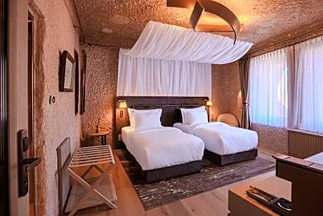 At Avantgarde Refined Caves of Cappadocia, exceptional service and top-notch amenities create a memorable experience for guests. Complimentary internet access is available in the hotel to ensure you stay connected during your visit.Arrange your trips to and from the airport using the hotel's convenient transportation services booking. Car hire and shuttle offerings at the hotel simplify arranging your excursions, explorations, and additional activities in Urgup. Complimentary parking is available for guests.Continuously receive the support you require through front desk amenities such as concierge service, express check-in or check-out, luggage storage and safety deposit boxes. At the hotel, their tours can even assist you in booking tickets and securing reservations for leisure activities and adventures.Chilly nights become more delightful than balmy ones, as you snuggle near the hotel's inviting hearth.Always look your best in your preferred attire with the dry cleaning service and laundry service provided at Avantgarde Refined Caves of Cappadocia. Craving relaxation? In-room amenities such as room service and daily housekeeping allow you to maximize your time spent inside the room.Due to health concerns, smoking is strictly prohibited within the entire premises of hotel. For the health and well-being of all guests and staff, smoking is restricted exclusively to assigned zones. Accommodations come equipped with all the conveniences required for a restful night's slumber.A selection of rooms feature linen service, blackout curtains and air conditioning to ensure your comfort and convenience. A few accommodations at Avantgarde Refined Caves of Cappadocia also include unique design elements like a balcony or terrace.A few chosen rooms are equipped with television and cable TV to ensure guest amusement.In certain rooms, the hotel offers visitors access to a coffee or tea maker, bottled water, instant coffee, instant tea and mini bar.Avantgarde Refined Caves of Cappadocia offers a hair dryer and toiletries in the restrooms of specific accommodations. A delightful breakfast is the perfect way to begin your day, and at Avantgarde Refined Caves of Cappadocia, you can always indulge in a scrumptious meal on-site.Allow your journey to be free from the pangs of hunger! On-site eateries offer delicious and accessible meal choices.An evening spent at hotel's bar can offer as much enjoyment as venturing out with your fellow travelers.At Avantgarde Refined Caves of Cappadocia, affordable refreshments are available 24/7 through the convenient vending machines on-site.At Avantgarde Refined Caves of Cappadocia, guests can take pleasure in the delightful recreational amenities provided for their entertainment.Conclude your days in complete tranquility by visiting the hot tub situated precisely at the hotel. At Avantgarde Refined Caves of Cappadocia, a wide array of amenities guarantees a fulfilling experience throughout your visit. Make your holiday truly memorable by taking a rejuvenating plunge into the pool.