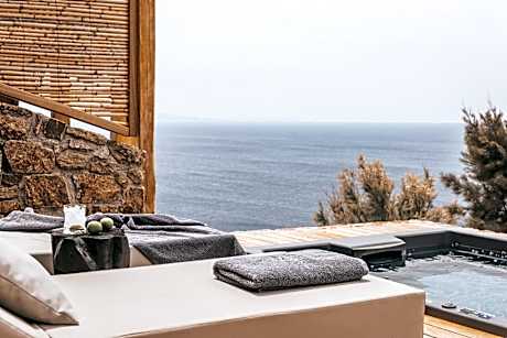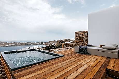 Located in Psarou, 1.8 miles from Psarou Beach, Alissachni Mykonos has accommodations with a seasonal outdoor swimming pool, free private parking, a garden and a shared lounge. Each room at the 5-star hotel has sea views, and guests can enjoy access to a terrace and to a hot tub. The property provides a 24-hour front desk, airport transportation, room service and free WiFi throughout the property. The rooms come with air conditioning, a flat-screen TV with satellite channels, a coffee machine, a shower, free toiletries and a closet. Rooms have a safety deposit box, while certain rooms contain a balcony and others also feature pool views. A buffet, à la carte or continental breakfast is available at the property. At the hotel you'll find a restaurant serving Greek, Italian and Mediterranean cuisine. Vegetarian, halal and kosher options can also be requested. Bike rental and car rental are available at this hotel and the area is popular for cycling. Mykonos Windmills is 2.6 miles from Alissachni Mykonos, while Little Venice is 2.6 miles from the property. Mykonos Airport is 3.1 miles away.