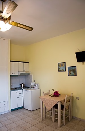 Built in 1997, this apartment hotel offers 9 spacious apartments and 6 comfortable studios, ideal for families, groups, couples, and business travelers. A short drive from the main train and bus stations, it's also conveniently located 2. 5 km from the beach. Guests can enjoy amazing views of the port of Georgioupoli and the White Mountains. Alkion is situated 25 km from Rethymno, 45 km from Chania, and 5 km from Crete's largest lake. Popular destinations like Balos Beach and Elafonisi Beach are within a 2-hour drive, while the Argyroupoli waterfalls are just 20 minutes away.