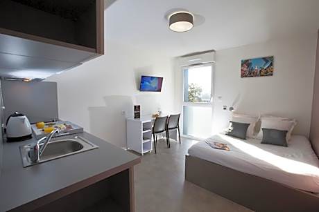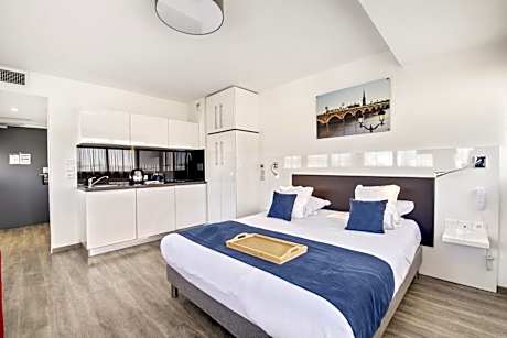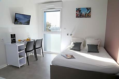 Offering free WiFi, All Suites Appart Hôtel Pessac is located in Pessac, 5 mi from Bordeaux. Arcachon is 27 mi from the property. Private parking is available on site. The pet-friendly accommodations is air conditioned and is fitted with a flat-screen TV. There is a seating and/or dining area in some units. There is also a kitchenette, equipped with a microwave and toaster. A refrigerator and stovetop are also provided, as well as a kettle. Every unit features a private bathroom with a bath or shower. Bed linen is available. All Suites Appart Hôtel Pessac also includes a sauna and fitness center. Saint-Émilion is 25 mi from All Suites Appart Hôtel Pessac. Mérignac Airport is 3.7 mi away.