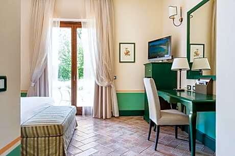 Alla Corte delle Terme is set in extensive grounds, and is located 1.6 mi away from Terme dei Papi thermal baths. The large rooms all have garden views and a flat-screen TV with pay-per-view channels, The private bathroom has a hairdryer and free toiletries. The Alla Corte Resort is 10 minutes' drive from Viterbo city center. Lake Bolsena is 15 mi away.