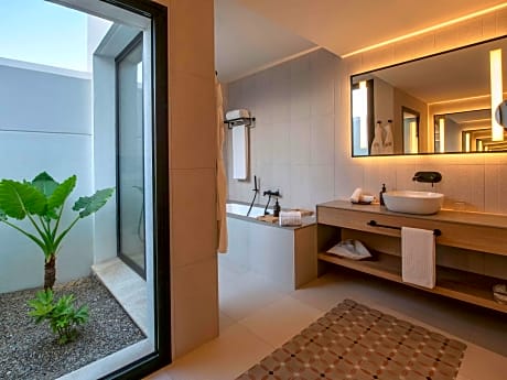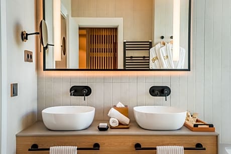 This double room features a hot tub. The spacious double room features soundproof walls, a mini-bar, a terrace with garden views as well as a private bathroom boasting a bath. The unit has 1 bed.