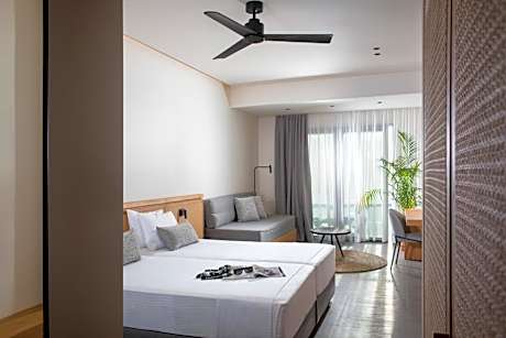 Centrally located in Almyrida Town and by the beach, The Almyrida Resort consists of four hotels, the Almyrida Beach Hotel, the Almyrida Residence Hotel, the Almyrida Studios Hotel and the Almyrida Gardens. In our premises you can find 4 outdoor pools, a fitness center, a spa, an infinity adults only pool in our Roof Garden. All rooms offer a balcony with view either to the Sea, or to the mountains. Certified Greek breakfast is served in the morning. Equipped with free Wi-Fi, the units come with air conditioning, flat-screen satellite TV, mini fridge and safety deposit box. Some include a spa bath, separate rooms, or DVD player. Greek breakfast at Almyrida Resort includes among others local delicacies. The on-site bar offers beverages, cocktails, ice creams and snacks. The à la carte Restaurant Thea serves Cretan and European fine dinining dishes on the rooftop garden. Various restaurants, cafés and a beach are close to the Almyrida. It is 16 mi from Chania city and 19 mi from Chania Airport.