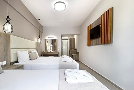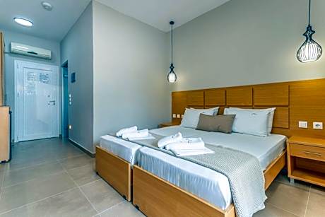 Providing pool views, Aloni Hotel Pefkochori in Pefkochori provides accommodations, an outdoor swimming pool, a garden, a bar, and a shared lounge. This condo hotel is a 8-minute walk from Pefkohori Beach and 1.5 miles from Hanioti Beach. There's a sun terrace and guests can access free Wifi and free private parking. Featuring a balcony, the units offer air conditioning and have a flat-screen TV and a private bathroom with shower and a hair dryer. Certain rooms include a fully equipped kitchenette with a fridge and kitchenware. At the condo hotel, every unit has bed linen and towels. Buffet and continental breakfast options with fresh pastries, fruit, and juice are available. There is an on-site snack bar. Thessaloniki Airport is 59 miles away.
