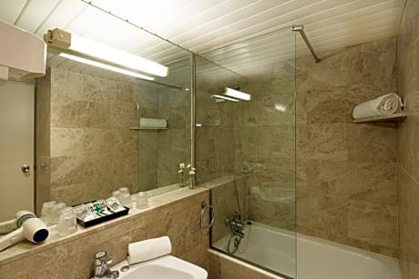 Providing free toiletries, this quadruple room includes a private bathroom with a bath, a bidet and a hairdryer. The quadruple room provides a flat-screen TV, a wardrobe, a safe deposit box, a carpeted floor as well as mountain views. The unit offers 4 beds.